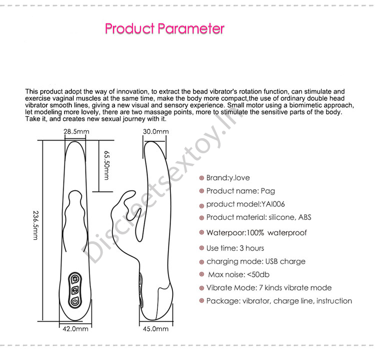 PAG Red Hot Rabbit Vibrator comes with seven different vibrating modes along with an ergonomic design. Compact in design, it is easy to store. What makes it more user-friendly is its USB rechargeable point that eliminates the effort to charge it up whenever required. It is 9.5 inches long and 1.5 inches wide.